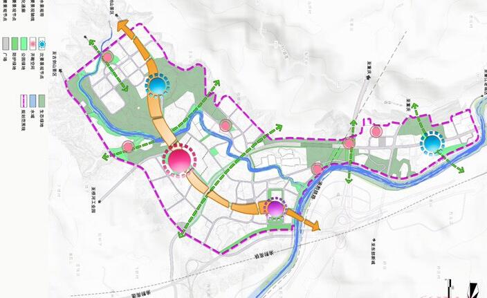 將有活力連續(xù)的街道、街區(qū)和公園用完善的步行系統(tǒng)和綠色廊道串聯(lián),加強(qiáng)山與城、水與城、山與水的對話,聯(lián)系起基地的生態(tài)要素,構(gòu)筑城市的生態(tài)基底。在這個(gè)基底之上,打造山環(huán)水繞的城市環(huán)境、高品質(zhì)社區(qū)、汽摩交易中心、社區(qū)生活中心,使基地成為未來城市的活力源泉、文化源泉、發(fā)展源泉和形象高地。
